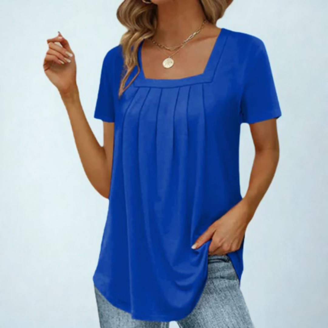 Halenka Adela byla navržena pro teplé dny – je lehká, vzdušná a přesto stylová. Jemné sklady, moderní čtvercový výstřih a splývavý střih jí dodávají ženský siluetu, která se bez námahy hodí do každodenního života. Ať už do kanceláře nebo ve volném čase – tato halenka nabízí ideální rovnováhu mezi strukturou a volností pohybu.