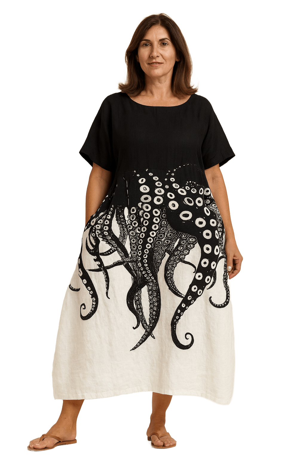 Šaty, které ti dodají pocit vlny krásy a inspirace! Katerina jsou maxi šaty elegantní aúchvatné, navržené v inspiraci barvami oceánu a přírody. Lehký prodyšný materiál vytváří pocit dokonalého pohodlí, zatímco lichotivý střih zvýrazní tvé přirozené kouzlo. Ideální na speciální události, procházky po pláži nebo jen na dny, kdy se chceš cítit nezapomenutelně.