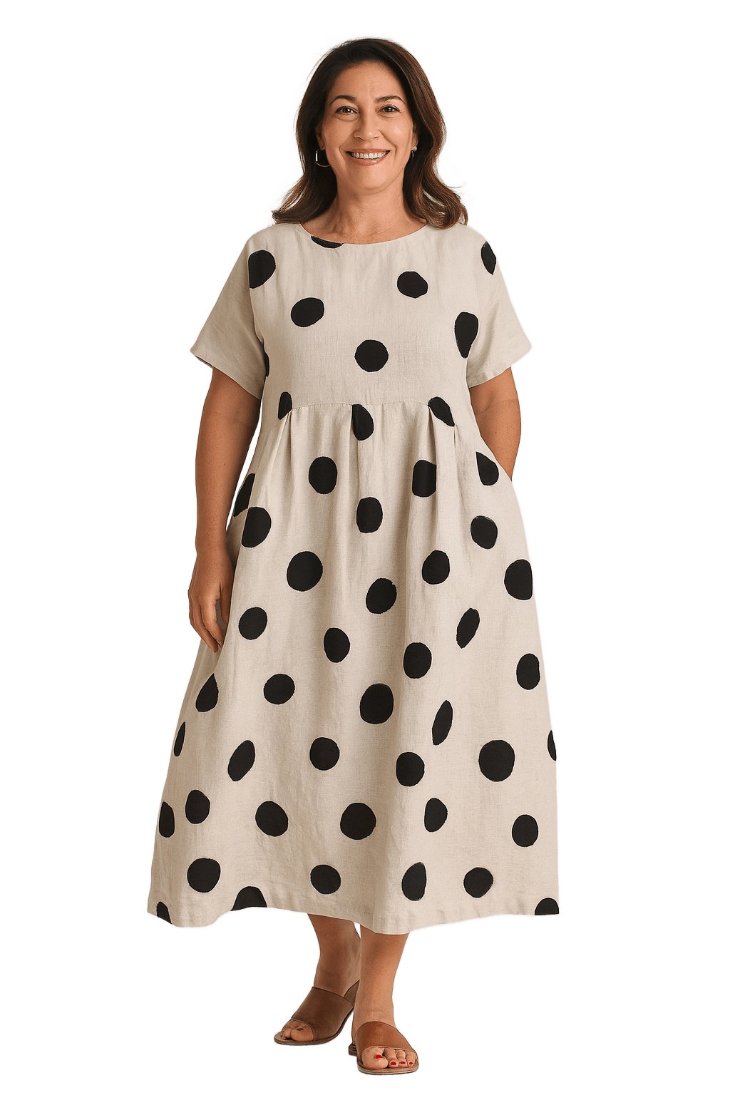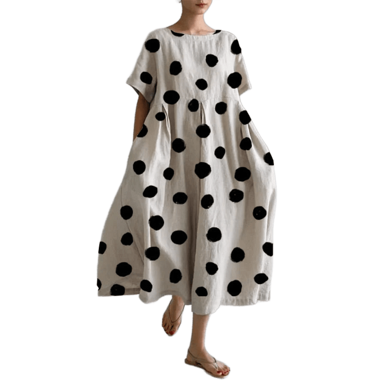 Perfektní šaty na každý den! Mira jsou pohodlné, stylové a plné šarmu díky puntíkovanému vzoru, který ti dodá mladistvý a svěží vzhled. Lehký střih a vzdušný materiál se postarají o to, že se stanou nepostradatelnou součástí tvého šatníku – pohodlné na nošení, ale zároveň dost elegantní na to, aby ohromily. Ideální na setkání s kamarádkami, na nákupy nebo prostě jen pro příjemný den bez kompromisů ohledně stylu.