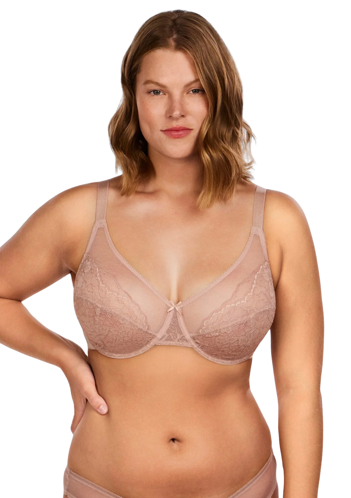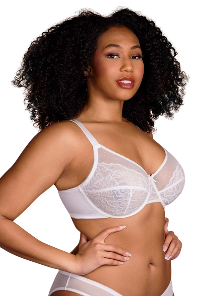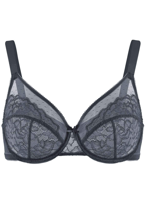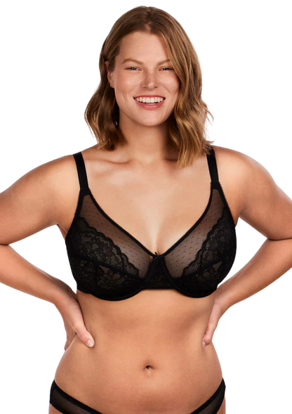Poloprůhledný tyl a květinová krajka vytvářejí něžný, ale pevný obal pro tvá prsa. Přirozeně je nadzvedne, vytvaruje a dodá ti sebevědomí bez nutnosti výztuže nebo nepříjemného stlačení.