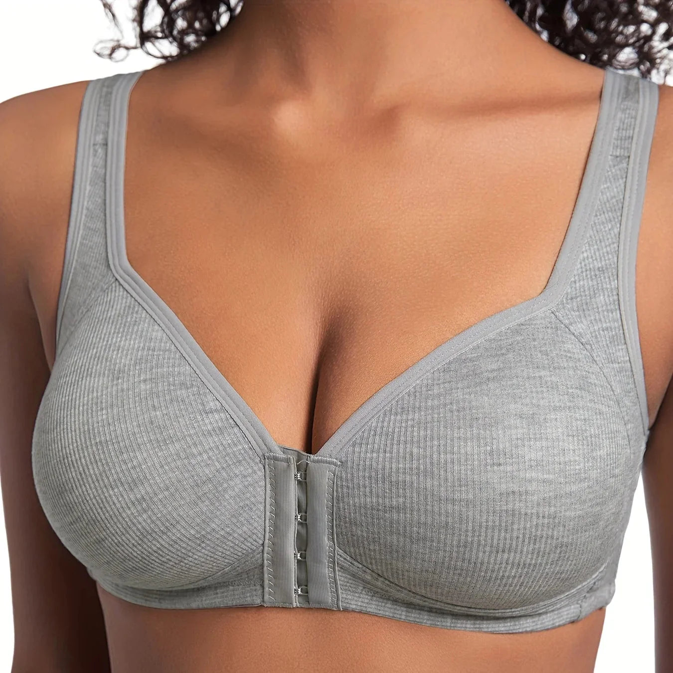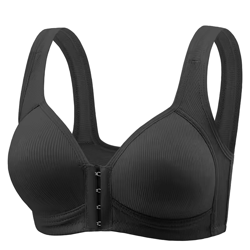 Už žádné zbytečné zvedání rukou nebo složité zapínání za zády. Praktické přední zapínání zajišťuje, že oblékání i svlékání bude rychlé a bez námahy – ideální pro každodenní použití.